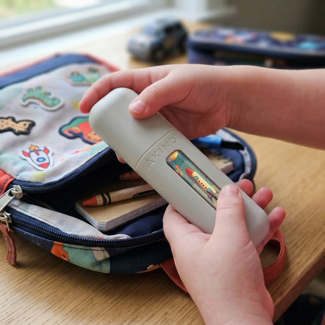 Die Akinod "Mini" 12:12 Besteckserie ermöglicht es Ihnen, Ihr Lieblingsbesteck überallhin mitzunehmen, mit minimalem Platzbedarf. Diese verkleinerte und kompakte Version unseres berühmten tragbaren Bestecks enthält einen Löffel und eine Gabel, die sich clever magnetisch verbinden lassen, um den Transport zu erleichtern. Erhältlich in einer breiten Kollektion farbenfroher Muster, passt sich dieses Besteck jedem Geschmack an und verleiht Ihren Mahlzeiten unterwegs eine persönliche Note.