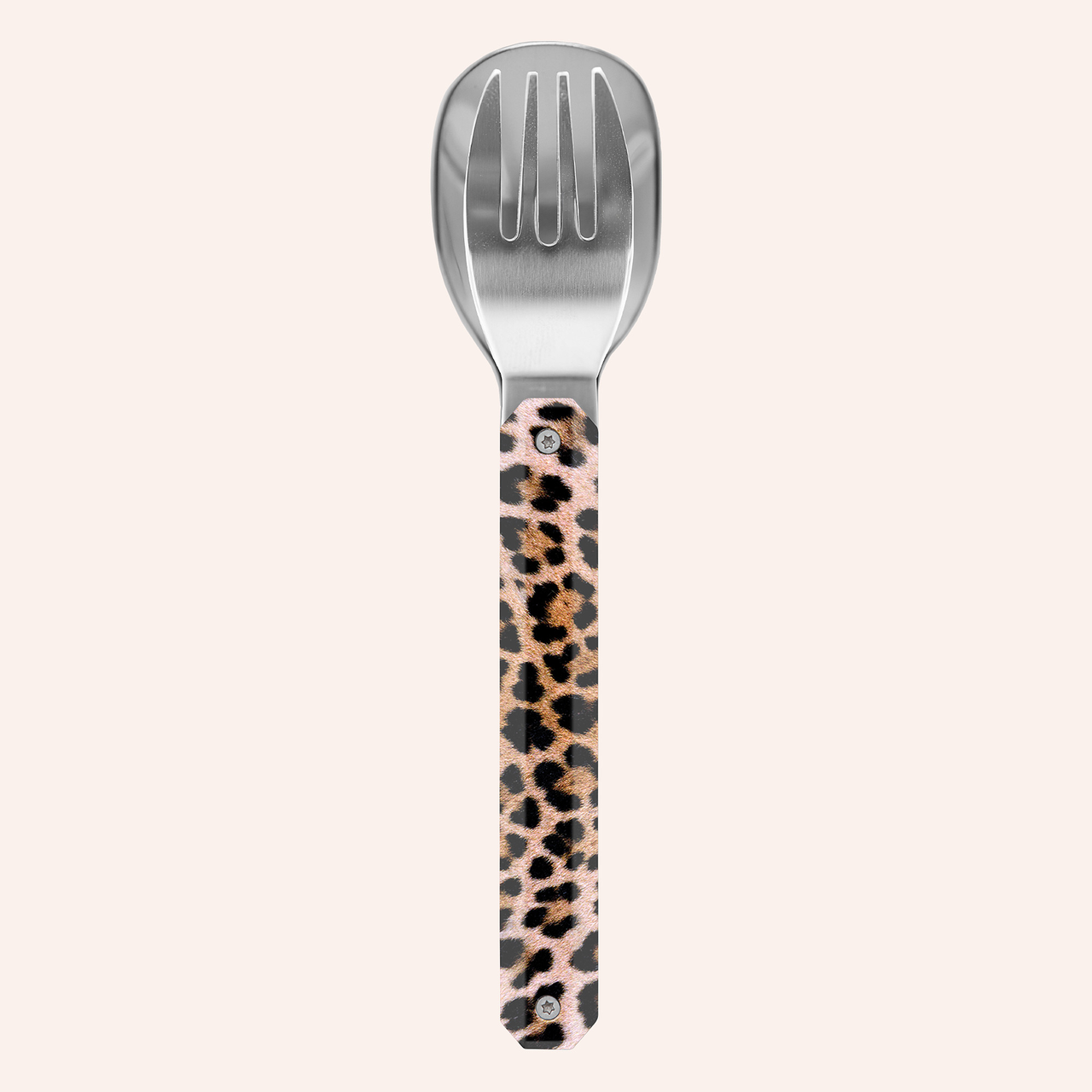 Couverts en acier inoxydable martensitique 2CR14, finition poli miroir. Composé d’une cuillère et d’une fourchette 4 dents. Manche en polymère (PC) transparent décoré. Assemblage aimanté. Livré avec étui de transport en polypropylène rigide (PP). Compatible lave-vaisselle.