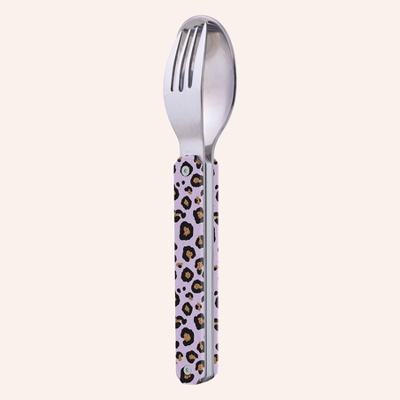 Couverts en acier inoxydable martensitique 2CR14, finition poli miroir. Composé d’une cuillère et d’une fourchette 4 dents. Manche en polymère (PC) transparent décoré. Assemblage aimanté. Livré avec étui de transport en polypropylène rigide (PP). Compatible lave-vaisselle.