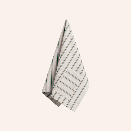 Derrière sa simplicité assumée se cache une idée limpide : une serviette de table munie d’une poche cousue permettant d’y glisser ses couverts Akinod préféré.